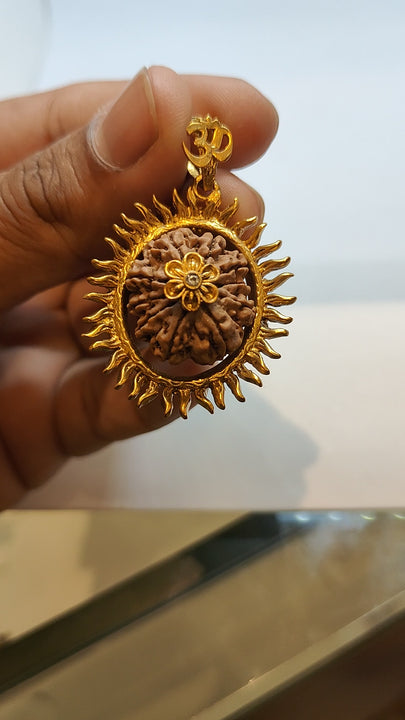 This unique 92.5 sterling silver pendant features a natural 10-Mukhi Rudraksha crafted in the shape of the Sun. Known for its spiritual significance, the 10-Mukhi Rudraksha symbolizes prosperity, leadership, and success. Expertly designed with fine silver craftsmanship, this pendant is perfect for daily wear or special spiritual occasions, adding elegance and divine energy to your jewellery collection.