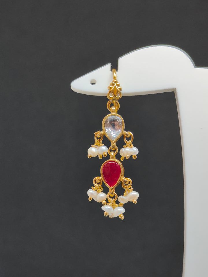 Crafted with precision, the Kundan work offers a royal aesthetic, while the pearls bring a subtle shine and sophistication. Lightweight and versatile, these hangings perfectly complement sarees, lehengas, festive outfits, and Indo-western attire, making them ideal for weddings, special occasions, and gifting.