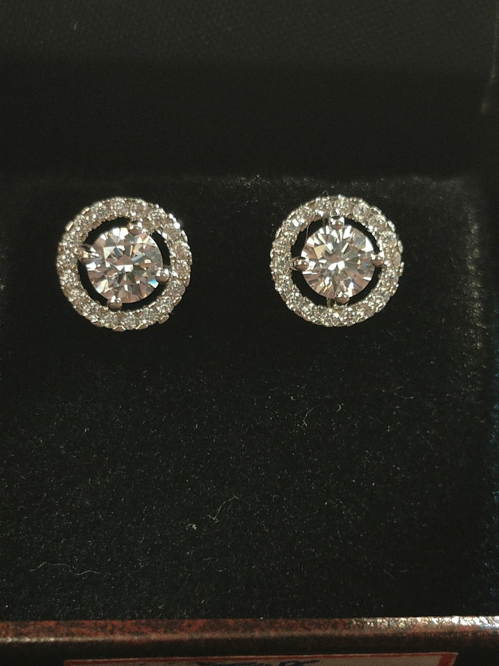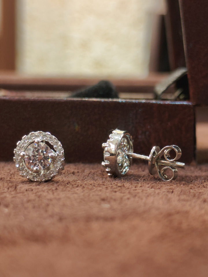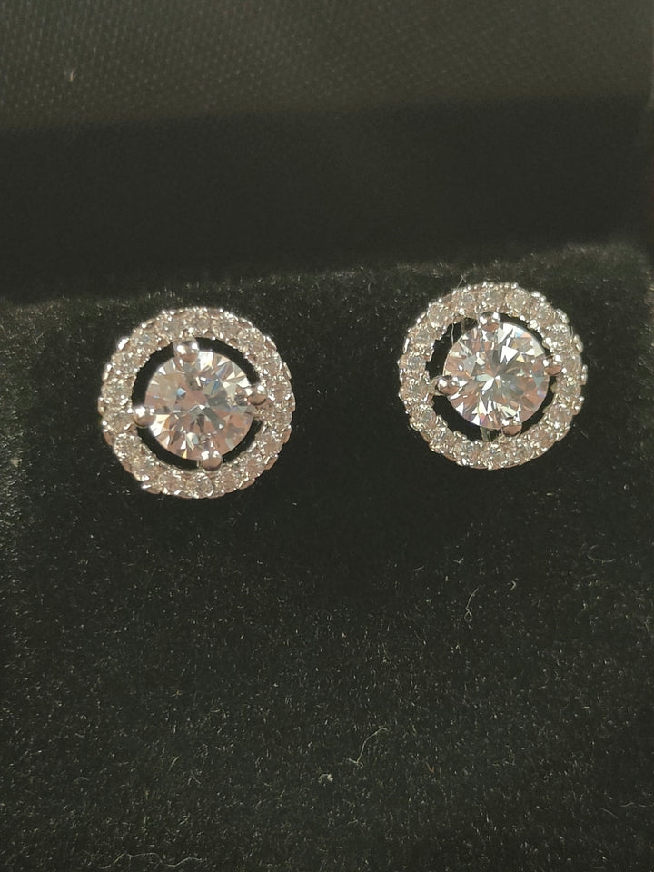 Design: Round studs with a big center stone encircled by small Swarovski stones