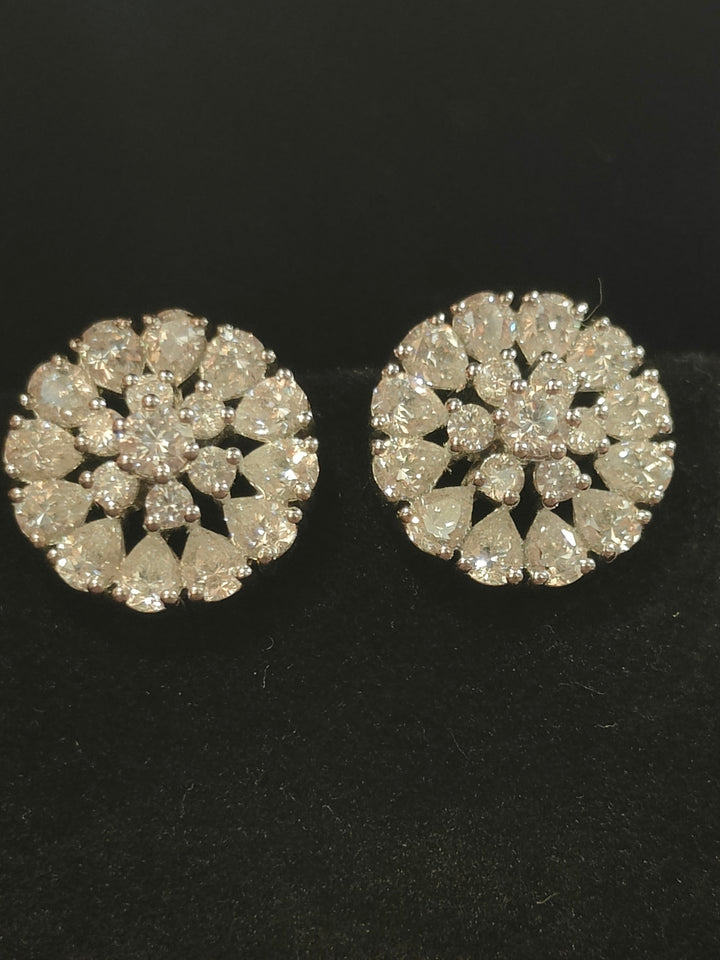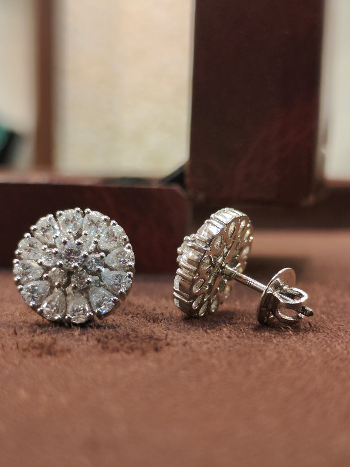 Shine with timeless elegance in these 92.5 silver round big-size studs, embellished with dazzling Swarovski stones. Their bold yet graceful design makes them a perfect choice for festive occasions, weddings, and parties, while still versatile enough to pair with modern outfits.