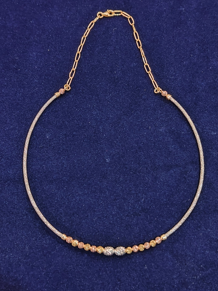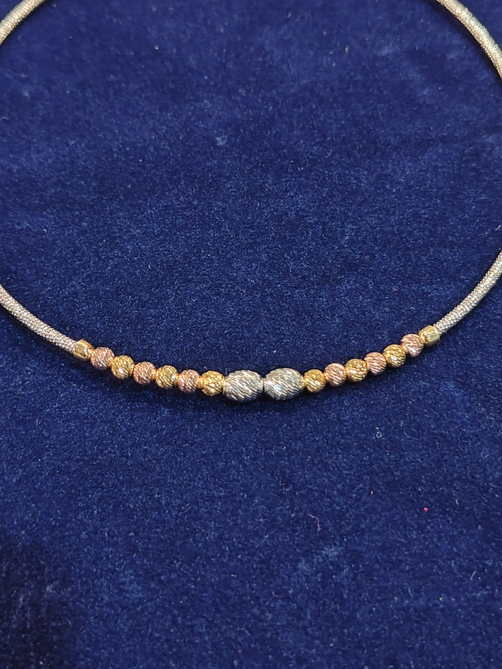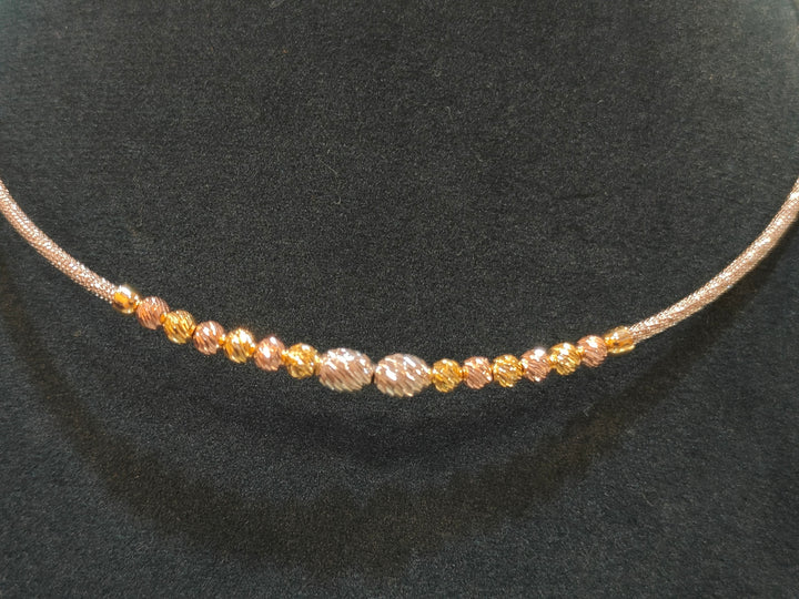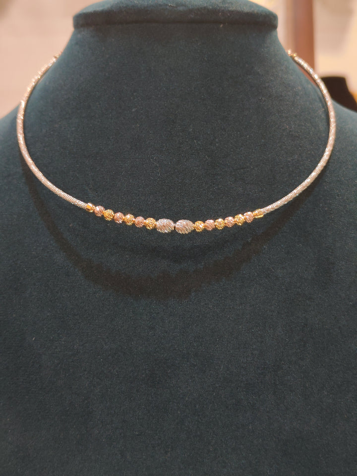 Celebrate timeless craftsmanship with this 92.5 silver Blossom Kante, designed to bring a graceful glow to any look. The necklace features delicate silver balls placed at the center, paired with a beautifully crafted Kante design accented through a blend of gold, silver, and rose-gold polish.