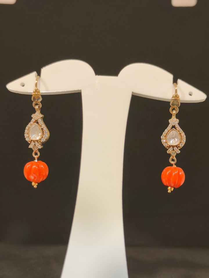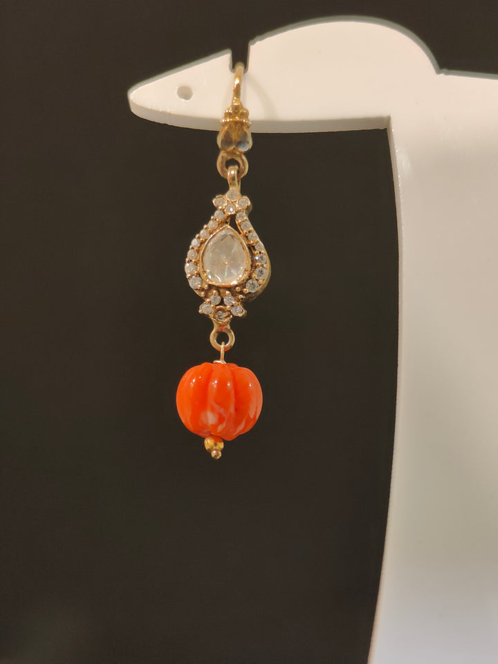 Design: Victorian oval flower hangings with coral Tarbuja beads