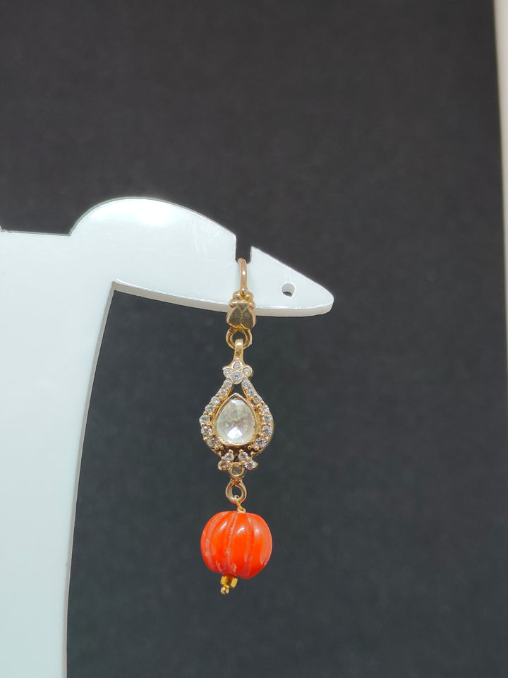 The oval flower pattern crafted in pure sterling silver gives a timeless antique look, while the coral Tarbuja drops add a refreshing pop of colour and movement. Lightweight yet visually striking, these hangings are perfect for festive wear, traditional outfits, and Indo-western styles.