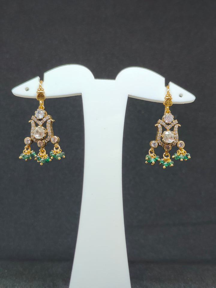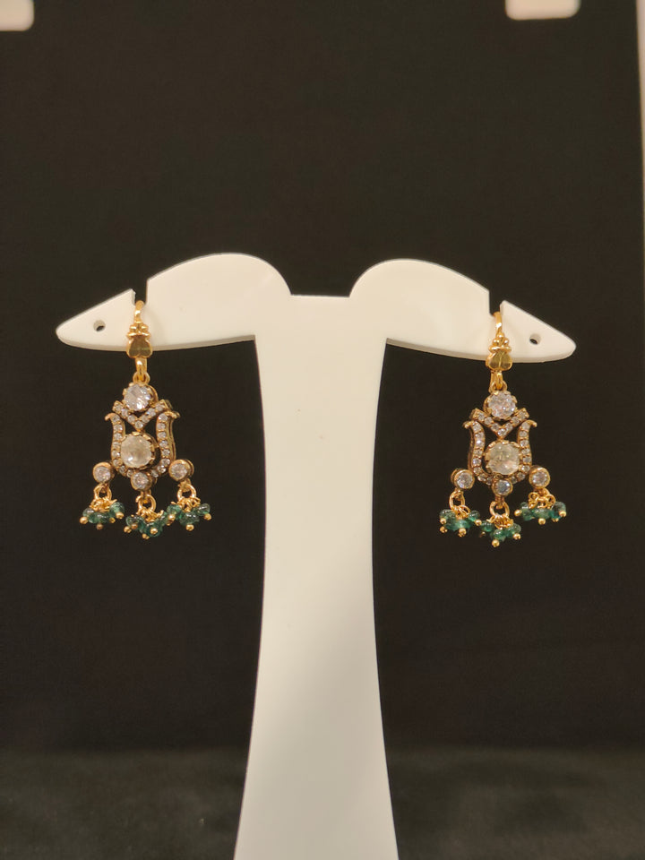 Add a vintage touch to your jewellery collection with these elegant 92.5 sterling silver Victorian U-shape hangings featuring delicate small round green bead drops. Crafted with intricate Victorian-style detailing, these earrings offer a perfect blend of antique charm and contemporary elegance.