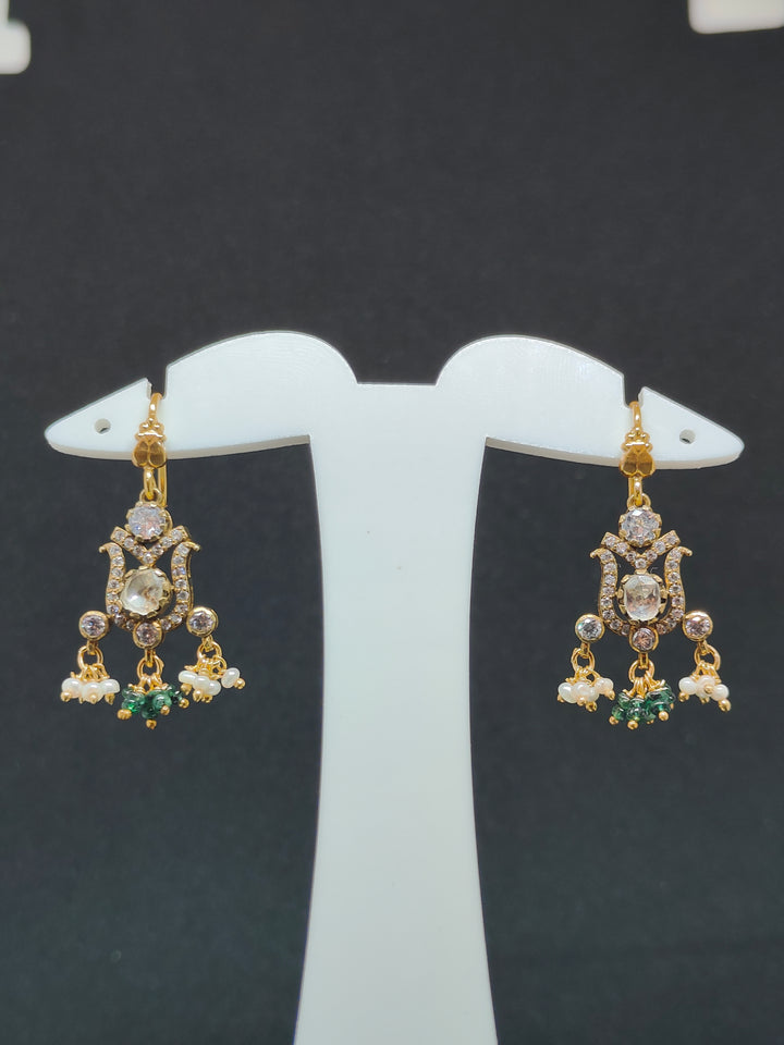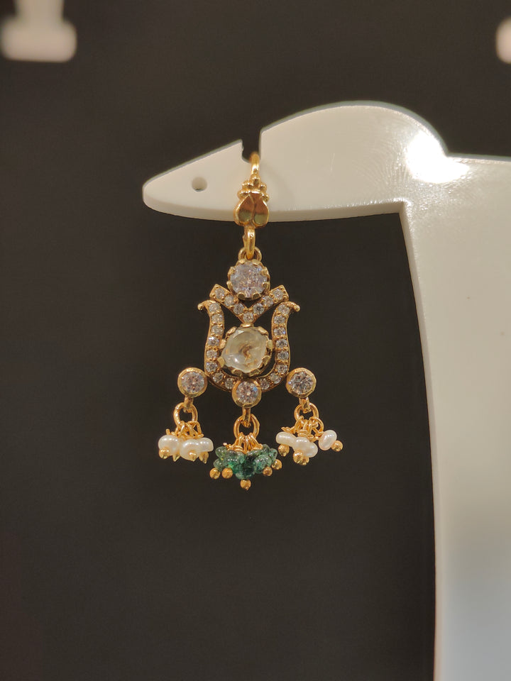 The pure silver U-shape frame showcases fine craftsmanship, while the green beads add a refreshing pop of colour. The soft pearl drops complete the look with a classic, luxurious touch. Lightweight and versatile, these earrings pair effortlessly with festive wear, traditional outfits, and Indo-western styles.