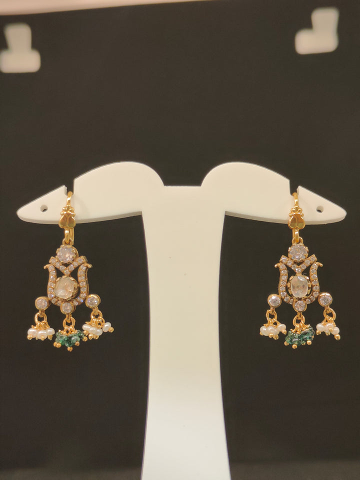 Experience timeless elegance with these beautifully crafted 92.5 sterling silver Victorian U-shape hangings, adorned with delicate small round green beads and graceful pearl drops. Designed with intricate Victorian-style detailing, these earrings bring a perfect blend of antique charm and modern refinement.